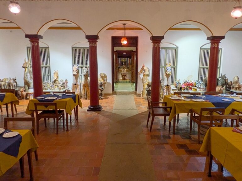 Today, the Kaliana Kotogai houses a permanent exhibition featuring Ayyanar terracotta, Thanjavur reverse glass paintings, and Karaikudi studio photography from the 1920s. In addition, on rainy days and for groups, restaurant service is available.